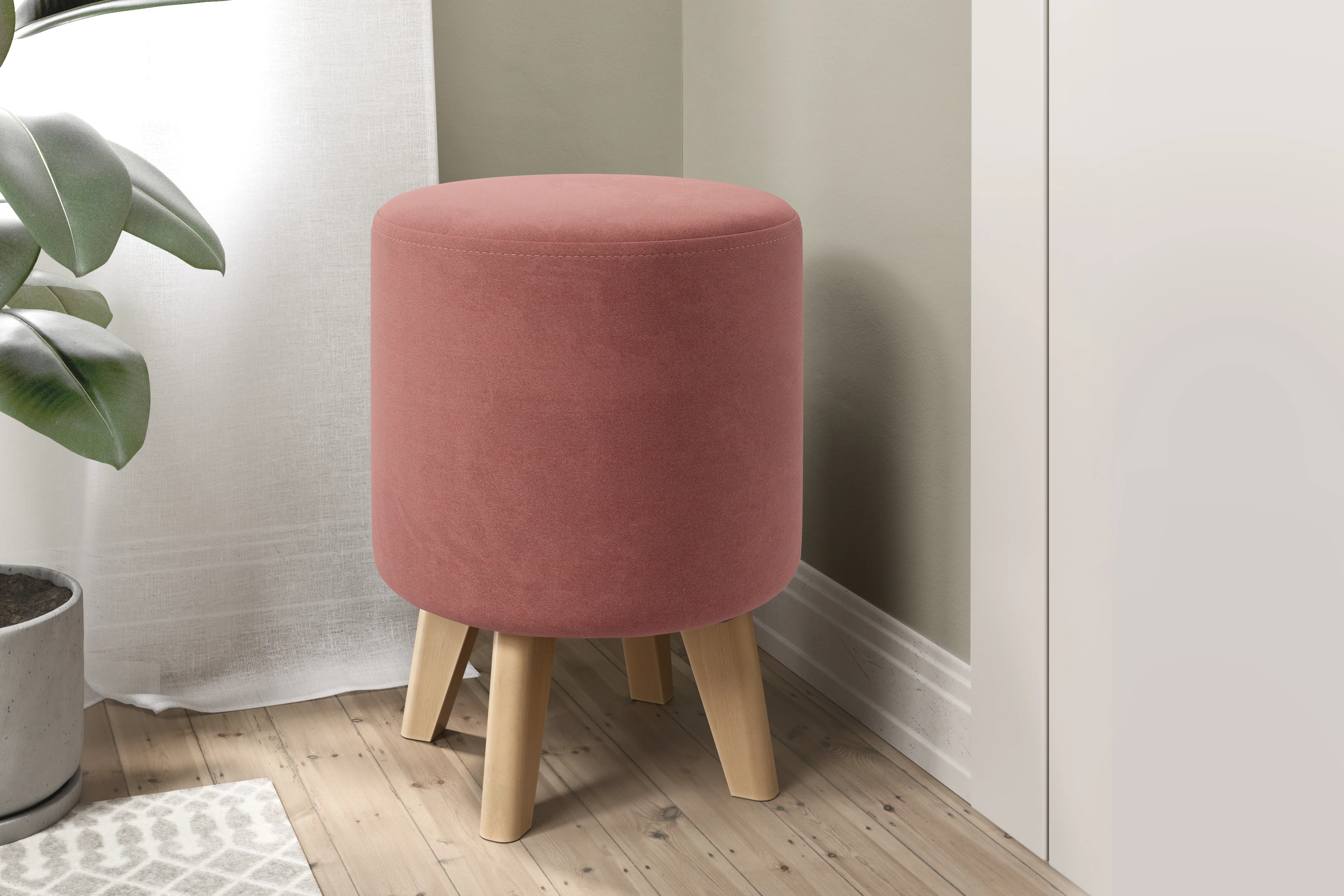 Круглая банкетка на ножках - это удобный и стильный предмет мебели, который может быть использован как место для сидения или как прикроватный пуфик. Она выполнена из ткани, что позволяет ей быть мягкой и удобной для сидения.