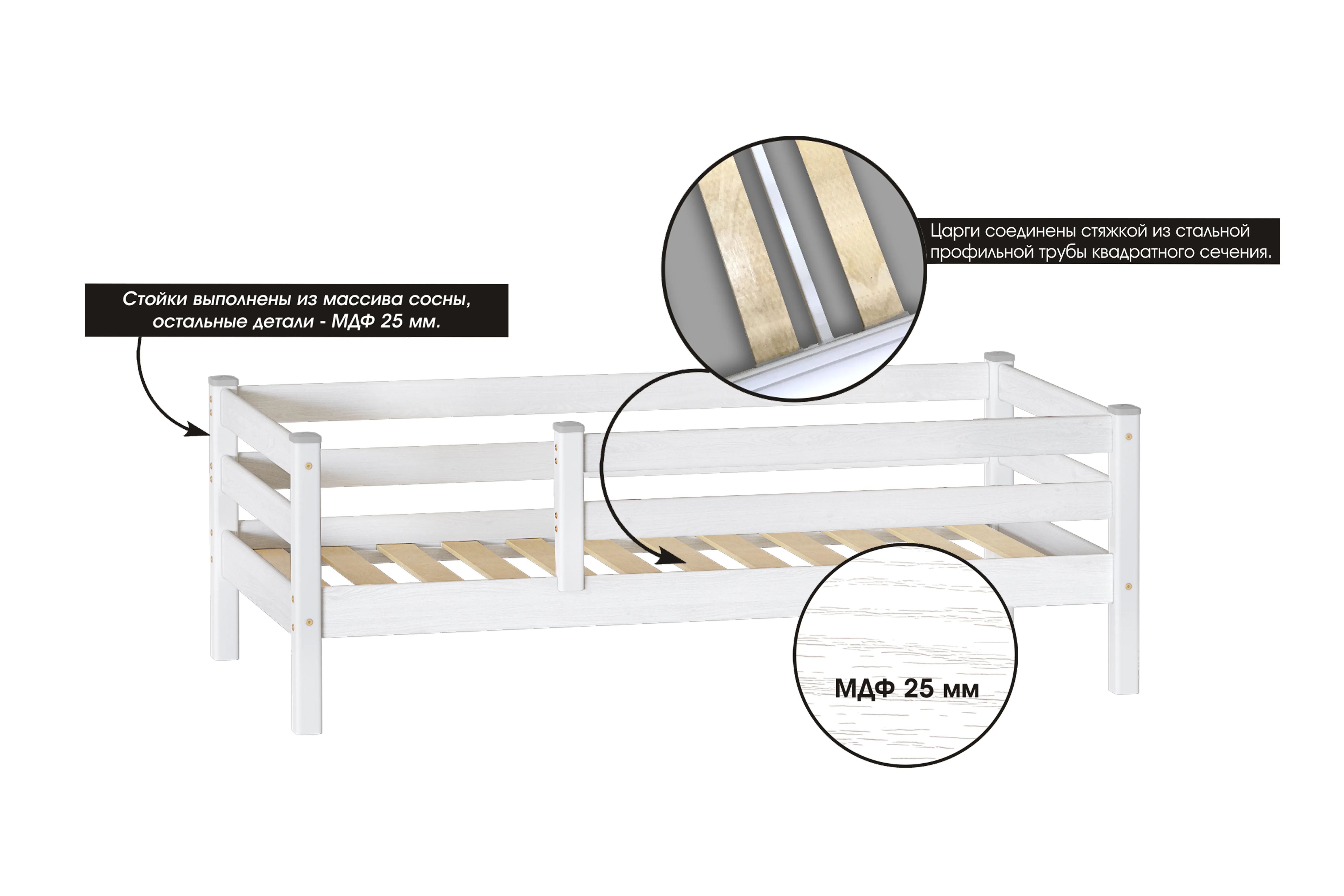 Стойки выполнены из массива сосны, остальные детали - МДФ 25 мм.