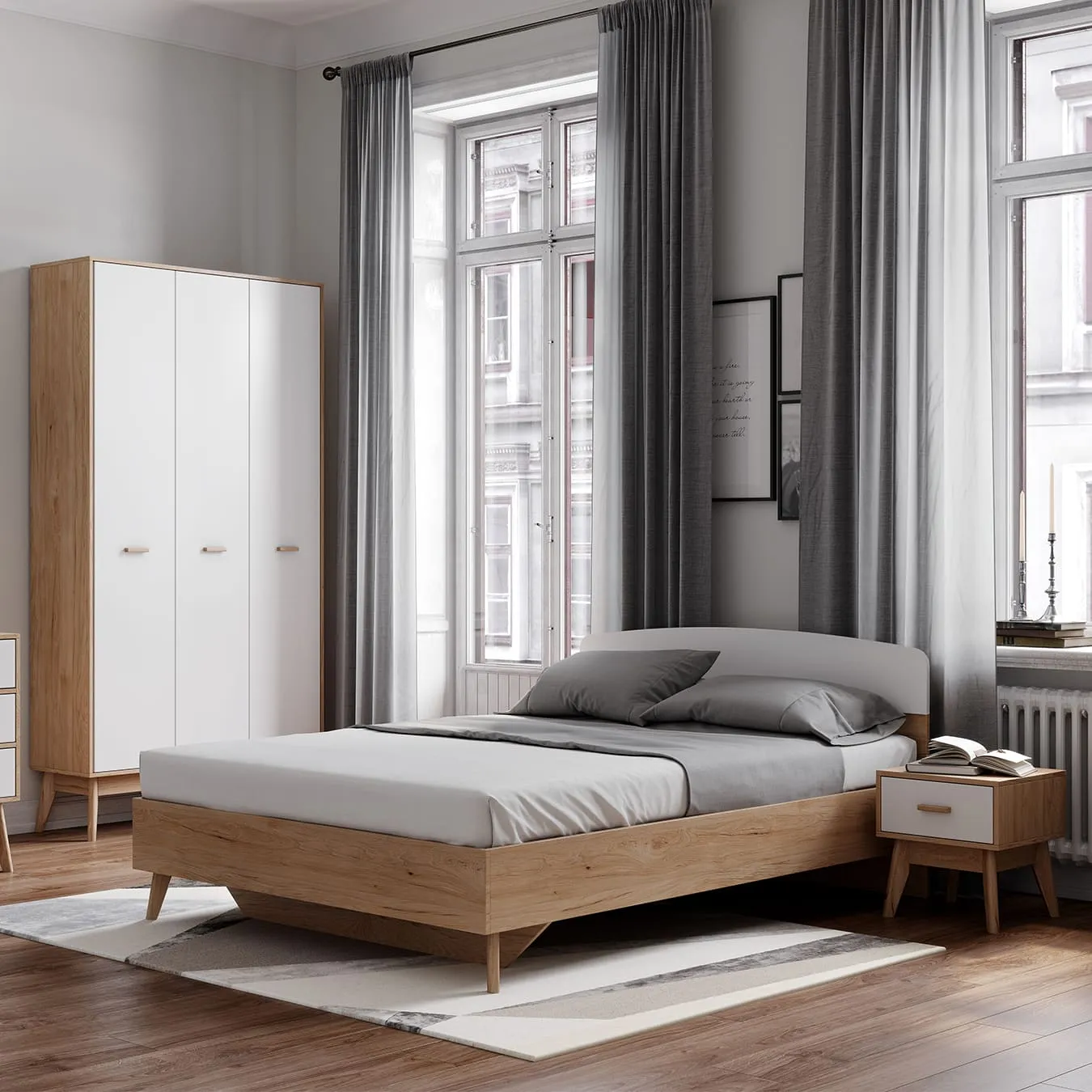 <virtues>Кровать выбрали из-за небольшой длины, всего 205,5 см и в дополнение к спальному гарнитуру Калгари. Кровать смотрится легко, совсем не загромождает пространство. Высокие ножки позволяют расположить под кроватью красивые коробки с разными мелочами. Кровать хорошо смотрится в скандинавском интерьере.</virtues> <limitations>Не обнаружено</limitations>