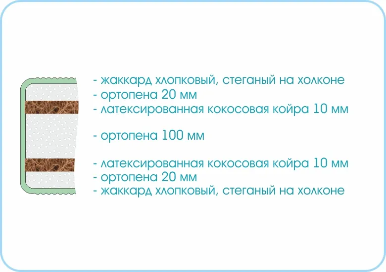 Латексированная кокосовая койра придает дополнительную жесткость и долговечность матрасу.