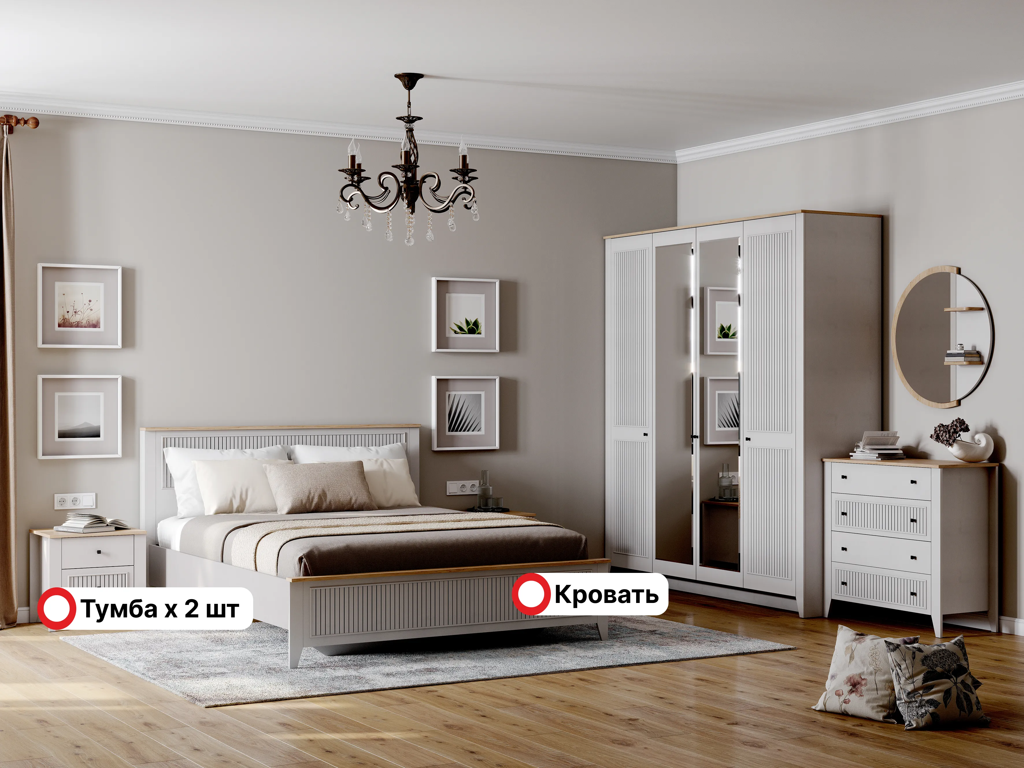 Спальня в цветовом решении "Персидский жемчуг/ Дуб натуральный светлый" придаст интерьеру воздушность, ощущение нежности и легкости, наполнив спальную комнату светом.