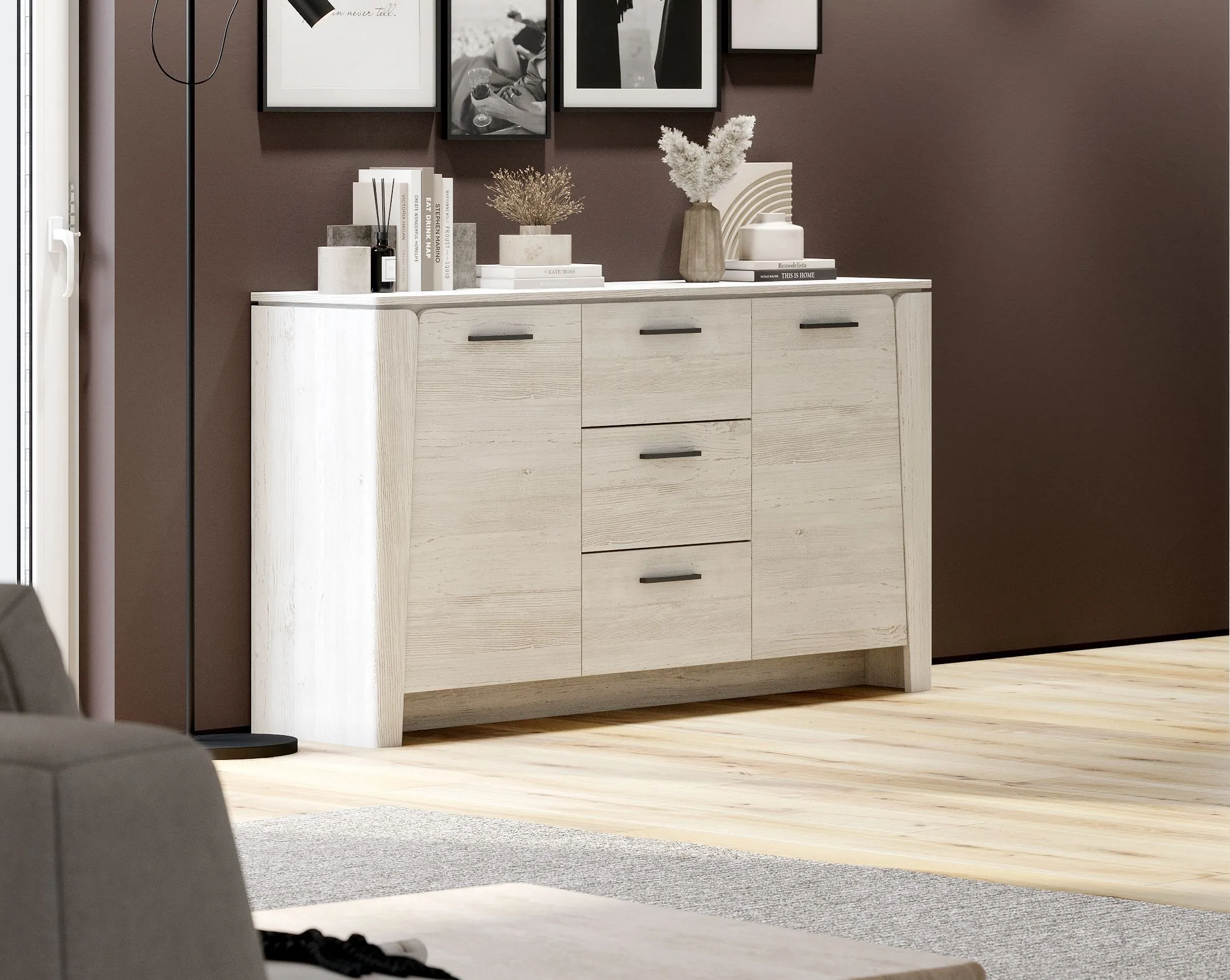 Благодаря компактным размерам, она не занимает много места и позволяет рационально использовать пространство комнаты. Тумба оснащена тремя ящиками, которые идеально подходит для хранения личных вещей и аксессуаров. Шариковые направляющие обеспечивают плавный и бесшумный ход ящика, позволяя быстро и легко найти нужную вещь.