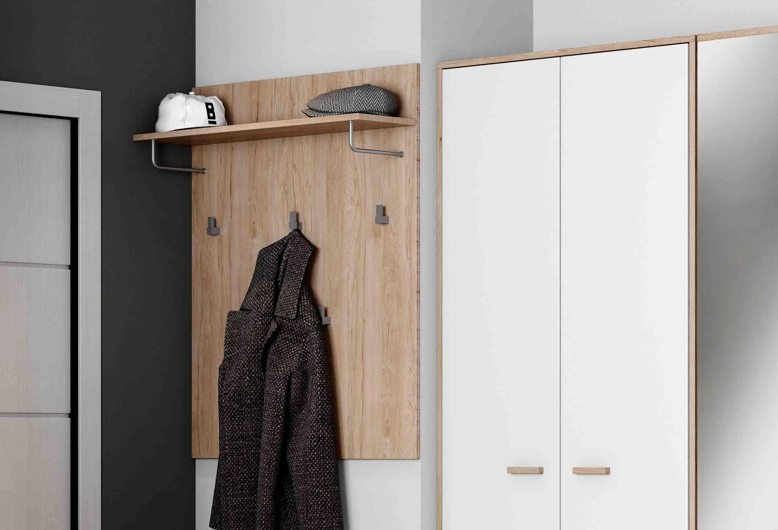 Вешалка "Калгари" поможет Вам рационально организовать хранение в прихожей. Настенный вариант крепления модуля позволяет оставить напольное пространство свободным либо Вы можете установить в комплект к вешалке тумбу "Калгари" с двумя ящиками для хранения мелочей.