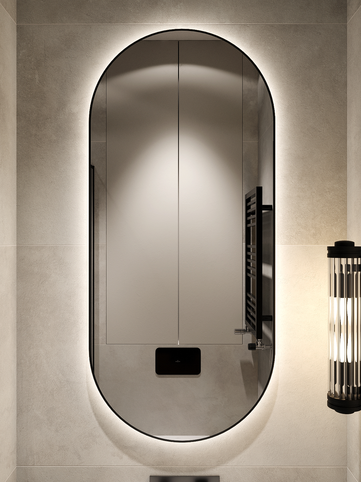 УФ-печать черного контура. Зеркало оснащено пластинами для крепления к стене и светодиодной лентой с выключателем, срабатывающим от взмаха руки. Упаковка представляет собой сбитый короб, состоящий из ЛДСП и ХДФ (сбитый на скобу). Дюбель-гвоздь приобретается отдельно, исходя из материала стен. |
